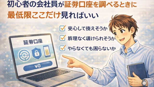 証券口座を調べ始めた初心者の会社員向けに、最初に確認すべき最低限のポイントを解説。情報に振り回されない考え方を紹介します。